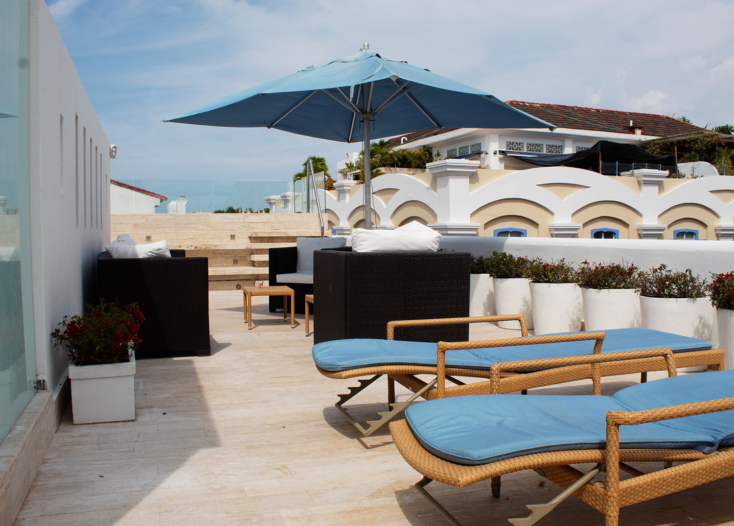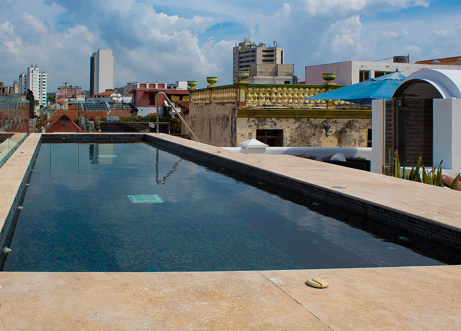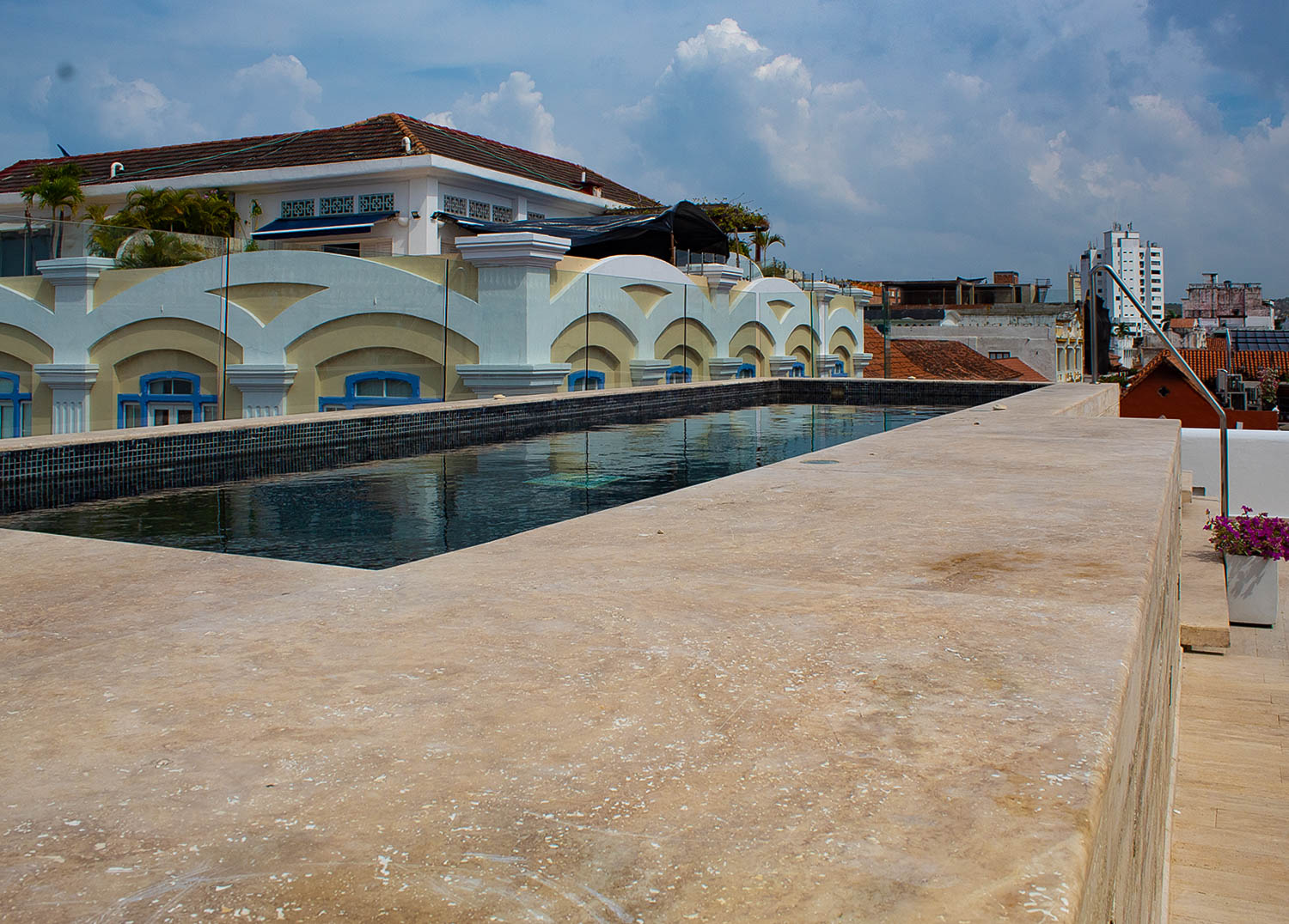 DECK EN MARMOL TRAVERTINO CHIARO Y REHABILITACIÓN EN SISTEMA DE MEMBRANA PVC.
